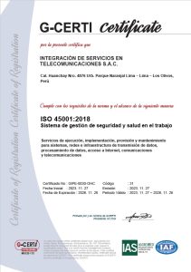 En ISETEL PERÚ, priorizamos el bienestar, la integridad y la salud de nuestros colaboradores en cada nivel de operación. La certificación ISO 45001:2018 garantiza que implementamos un sistema robusto de gestión de Seguridad y Salud en el Trabajo, alineado con estándares internacionales y mejores prácticas en prevención de riesgos laborales.
